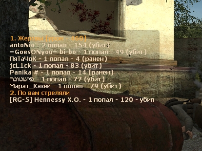 3)DoD:S Damage Report. Короче говоря это переделанная версия этого плагина. Моя версия отличается тем, что: 1) Плагин хорошо оптимизирован 2) Он имеет новые возможности (одна из которых - clientprefs (клиентских предпочтения)) 3) И многое другое... Полное описание и скриншоты по ссылке выше.