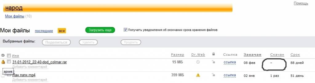 Вик, Это мы должны делать!!! Скачивать и смотреть!!! Та разве этого не понял!?! А их дело, придти и сказать!!! А потом в тину, будто ничего и не было. Всегда тяжело признавать свою не правоту... :'( Вот кстати, на всякий случай, скрин где отмечанно, что ноль закачек. А то скажут, что вновь, что то не так. Если посмотреть сколько дней назад я его закачал сюда и сколько осталось станет понятно, что скрин сделан сегодня... Для справки, на яндаксе файлы хранятся 90 дней.
